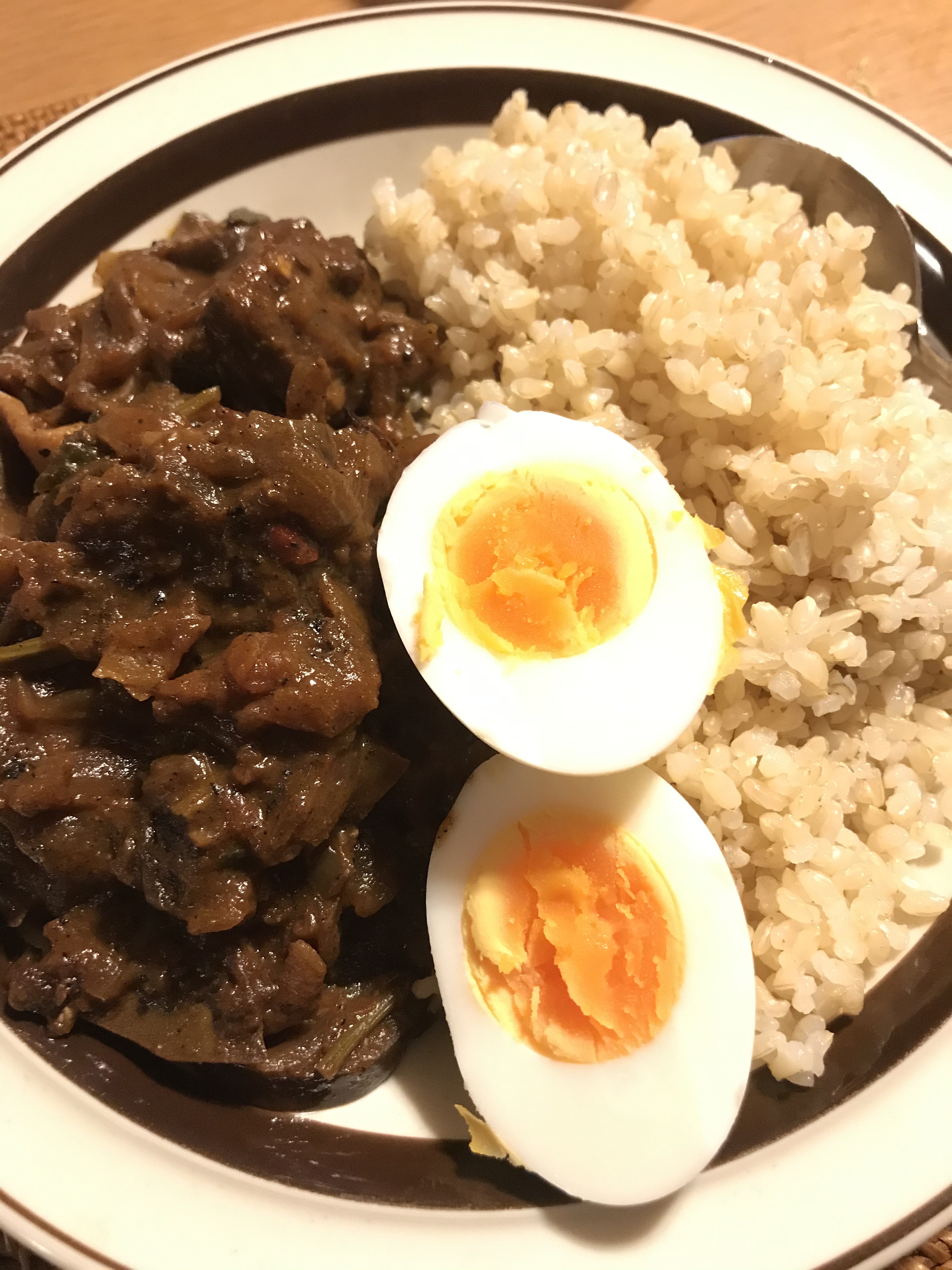 カレールーの中には大きい牛肉がゴロゴロ入っていて、味が染み込んでいて柔らかくとても美味しかったです〜!